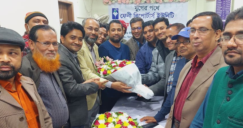 জাগো নিউজের দুই সাংবাদিককে ফেনী রিপোর্টার্স ইউনিটিতে ফুলেল শুভেচ্ছা