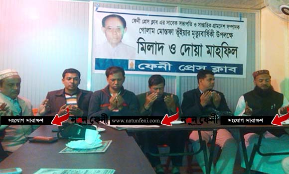 ফেনী প্রেসক্লাবের সাবেক সভাপতি ও সাপ্তাহিক গ্রামদেশ পত্রিকার সম্পাদক গোলাম মোস্তফা ভূঞার ২য় মৃত্যুবার্ষিকীতে আলোচনা সভা ও দেয়া মাহফিলের আয়োজন করেছে ফেনী প্রেসক্লাব। সোমবার শহরের ট্রাংকরোডস্থ একটি রেস্টুরেন্টে আয়োজিত অনুষ্ঠানে প্রধান অতিথি ছিলেন দৈনিক সমকালের নিজস্ব প্রতিবেদক শাহজালাল রতন।