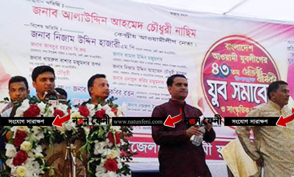বাংলাদেশ আওয়ামী যুবলীগের ৪৩ তম প্রতিষ্ঠা বার্ষিকী উপলক্ষে আয়োজিত যুব সমাবেশে মঞ্চে উঠেছেন কেন্দ্রীয় আওয়ামীলীগ নেতা আলাউদ্দিন আহমেদ চৌধূরীর, ফেনী-২ আসনের সংসদ সদস্য নিজাম উদ্দিন হাজার, জেলা আওয়ামীলীগের সভাপতি ও সদর উপজেলা চেয়ারম্যান আবদুর রহমান বি.কম, জেলা আওয়ামীলীগের সহ সভাপতি এডভোকেট আক্রামুজ্জামান, খায়রুল বাশার মজুমদার তপন, পরশুরাম উপজেলা চেয়ারম্যান ও উপজেলা আওয়ামীলীগের সাধারন সম্পাদক কামাল উদ্দিন মজুমদার, দাগনভূঞা উপজেলা চেয়ারম্যান ও জেলা যুবলীগের আহবায়ক দিদারুল কবির রতন, ...
