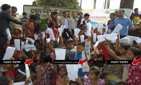 পথ শিশুদের মাঝে স্বাস্থ্য পরিচর্যা সামগ্রী ও প্রচারপত্র বিলি করা বিতরণ করেছে রোটারী ক্লাব অব ফেনী অপূর্ব। রবিবার ফেনী রেলওয়ে স্টেশনে আয়োজিত অনুষ্ঠানে প্রধান অতিথি ছিলেন কুমিল্লা জোনের এসিস্টেন্ট গভর্ণর রোটারিয়ান পিপি মোস্তফা আজিজুল মুনির।