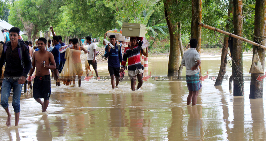 টানা বৃষ্টি ও ভারতীয় পাহাড়ি বন্যায় ফেনীর মুহুরী, কহুয়া ও সিলোনিয়া বাঁধের ৮টি স্থানে ভাঙ্গণ দেখা দিয়েছে। এত ফুলগাজী ও পুরশুরাম উপজেলার অন্তত ১৫টি গ্রাম প্লাবিত হয়েছে। পানি উন্নয়ন বোর্ড কর্তৃপক্ষ জানিয়েছে মুহুরী নদীর পানি সকাল থেকে বিপদ সীমার দুই শ’ সেন্টিমিটার উপর দিয়ে প্রবাহিত হচ্ছে।