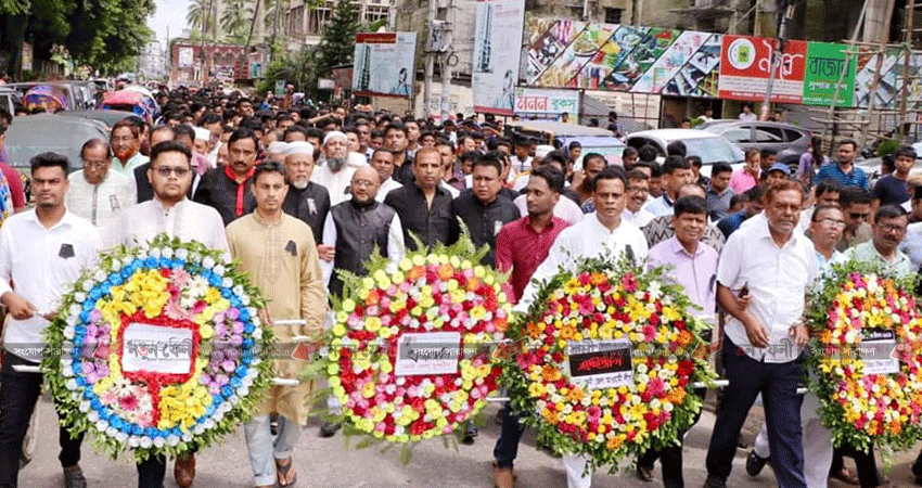 এদিকে ফেনীর ফুলগাজীতে বঙ্গবন্ধুর প্রতিকৃতিতে ফুল দিয়ে শ্রদ্ধা নিবেদন করেন ফেনী-১ আসনের সংসদ সদস্য শিরিন আখতার। এসময় উপজেলা পরিষদ চেয়ারম্যান আব্দুল আলিম, নির্বাহী অফিসার মো. সাইফুল ইসলাম, মহিলা ভাইস চেয়ারম্যান মঞ্জুরা আজিজ, উপজেলা সহকারী কমিশনার ভূমি মোছাম্মৎ সাবিনা ইয়াসমিন, ফুলগাজী থানার অফিসার ইনচার্জ মো.কুতুব উদ্দিনসহ উপজেলার বিভিন্ন সরকারি বেসরকারি ও স্বায়ত্তশাসিত প্রতিষ্ঠানের কর্মকর্তা-কর্মচারীরা উপস্থিত ছিলেন।